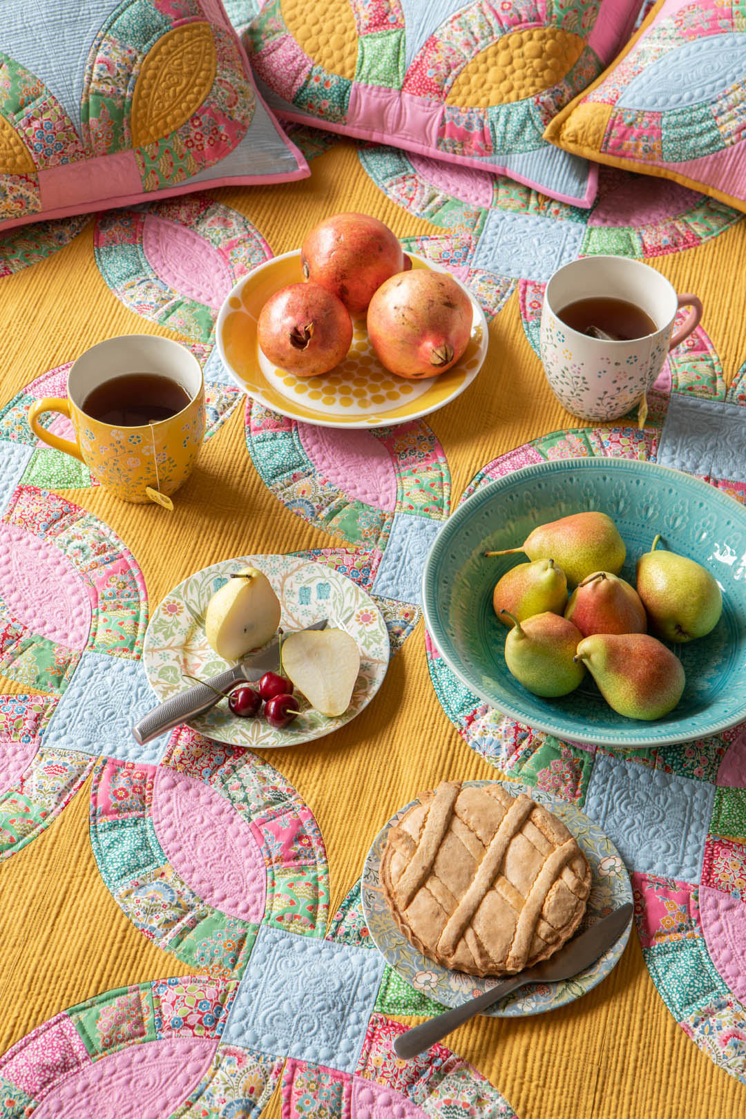 Hochwertiger Baumwollstoff aus der TILDA Kollektion PIE IN THE SKY von Februar 2023. Jeder Layer Cake beinhaltet 40 Stoffstücke (2 je Muster) in den Maßen 25 cm x 25 cm.